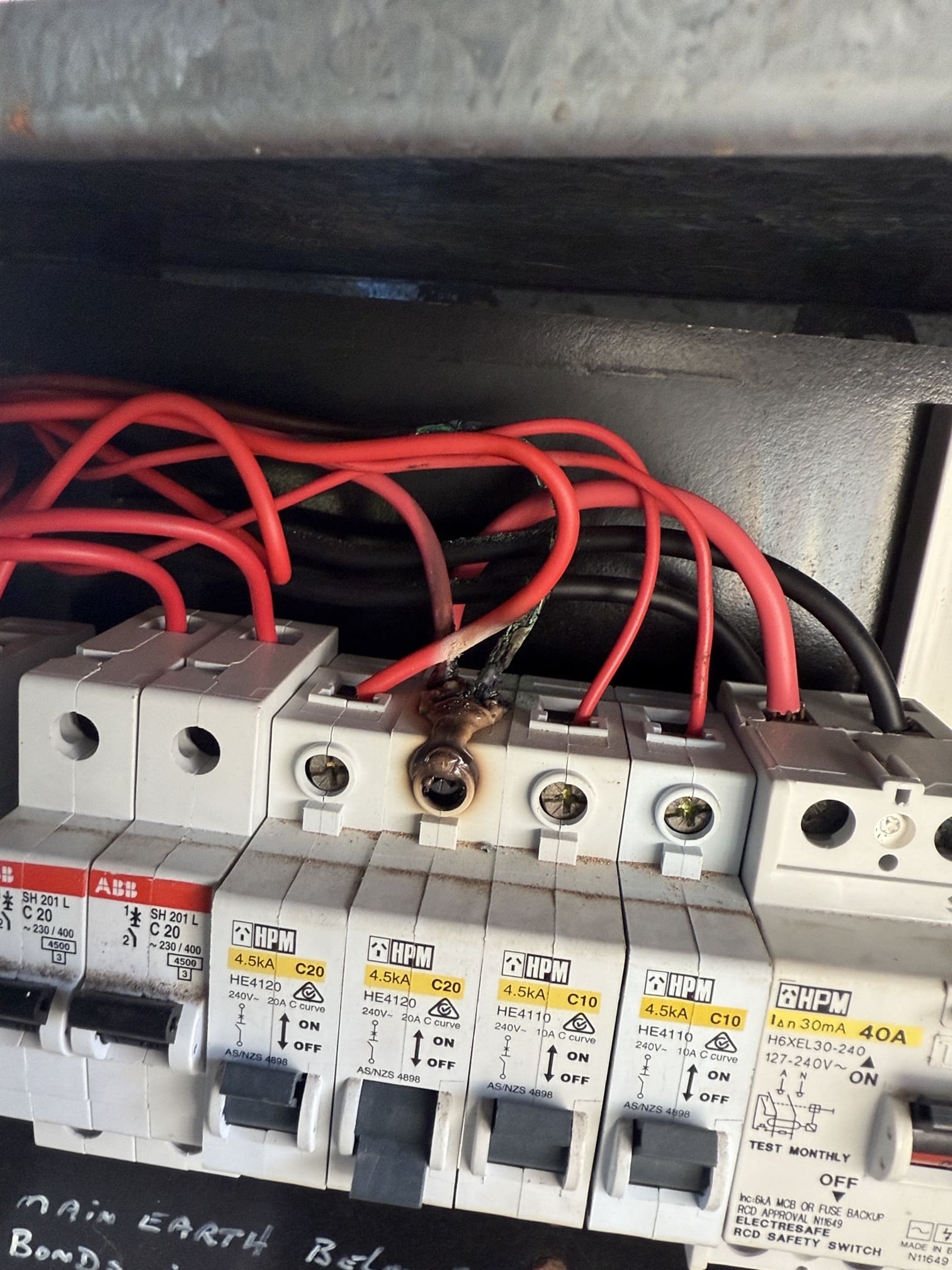 Recently, we were called out to a home in Mount Annan for what seemed like a simple power issue. However, upon inspection, we uncovered a serious hazard: live, exposed three-phase cables behind the switchboard.